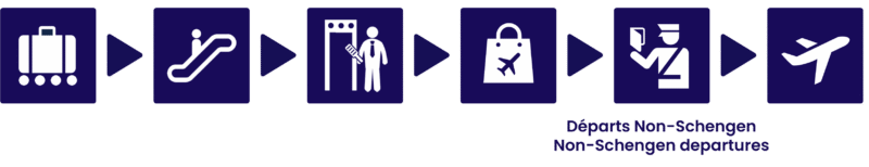 Follow the Exit-Baggage signs upon arrival. If you are arriving on a non-Schengen flight, you will need to go through passport control. After collecting your baggage, you will pass through French Customs before entering the public arrivals area.